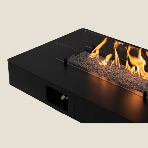 Fabriquée en acier inoxydable noir mat et dotée d’une vitre en verre trempé, Rio Table séduit par son élégance contemporaine. Son lit de pierres noires effet verre brisé crée une ambiance lumineuse et relaxante, parfaite pour vos soirées au jardin, sur la terrasse ou près de la piscine.