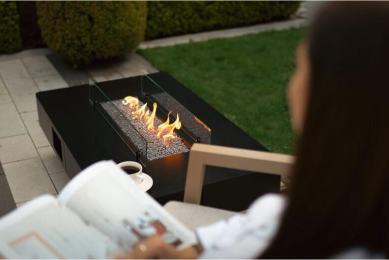 Cheminée au gaz design Rio Table – Élégance et confort en extérieur