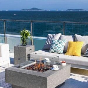 Fabriquée en béton fibré effet travertin, la Manhattan associe style moderne et intemporalité. Ses dimensions de 91 x 47 x 91 cm et son design carré en font une pièce centrale raffinée, qui s’harmonise parfaitement avec jardins, terrasses et patios. Ses lignes sobres et ses deux coloris lui permettent de s’adapter à tous les styles d’aménagement extérieur.